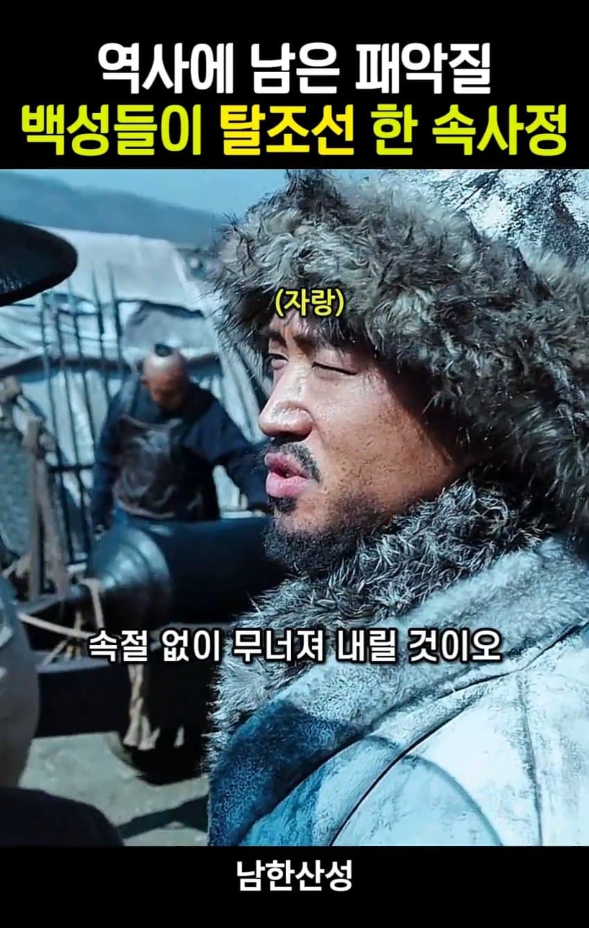 ㅋㅋㅋ 정명수 저거 병자호란 이후에 개 깝치다가나중에 청나라에서 참수당하고, 조선에 남은 친인척들은 싸그리 멸문시킴 ㅋㅋㅋ탈조선 쉽지 않아 ㅋㅋ한국사람으로 태어나서, 망해도 같이 망하고, 흥해도 같이 흥해야 역사에 욕을 안 먹음 ㅎ