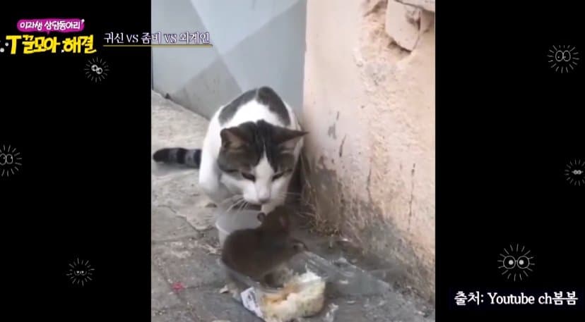 나는 악감정까진 없고, 누가 밥주길래 그냥 고양이 밥주나보다 하고 쳐다보고 있었는데 눈 똥그랗게 뜨면서 나한테 와서 다짜고짜 노려봐서 무서웠는데 저거였구만