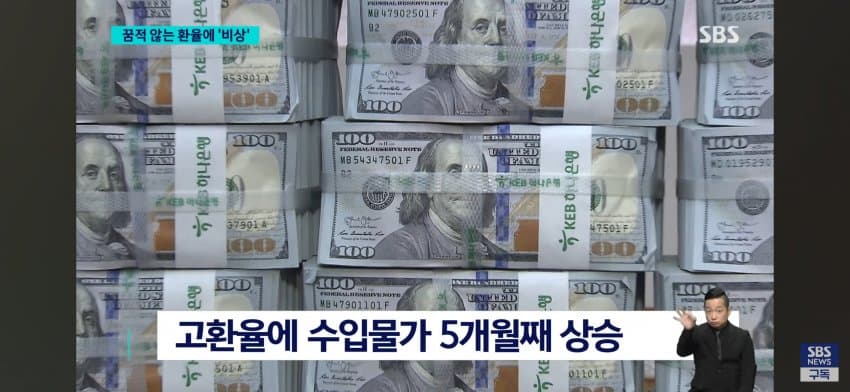 고환율이면 수출에 유리하고 수입에 불리한 거 모름? 물가는 당연히 오르지