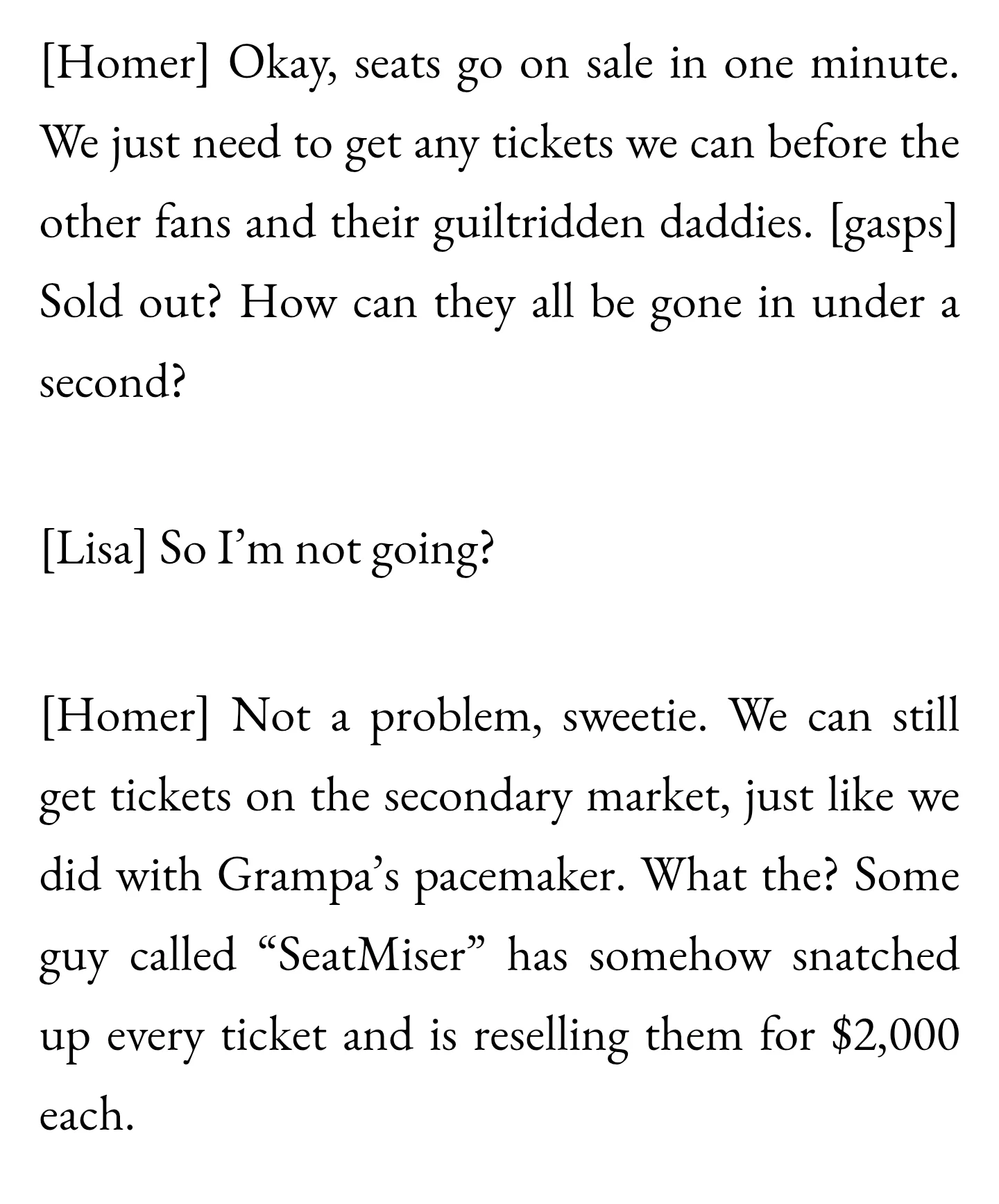 그래서 중간에 마을회관에서 암표상 잡겠다고 추적하고 호머는 오토한테 어떻게 싸게 암표를 삼
