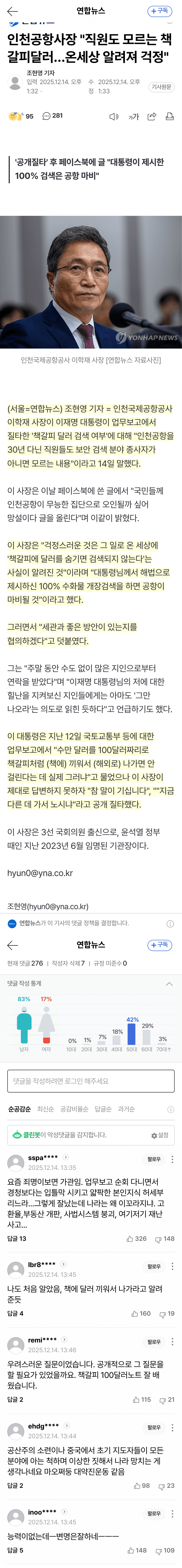 국가 원수가 시키면 시키는대로 하면 되지, 뭔 공항 사장 나부랭이가 말대꾸?보니까 탄핵당한 윤석열 때 임명된 남아있는 적폐네.넌 뒤졌다 이제