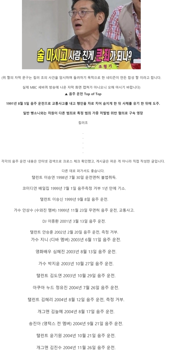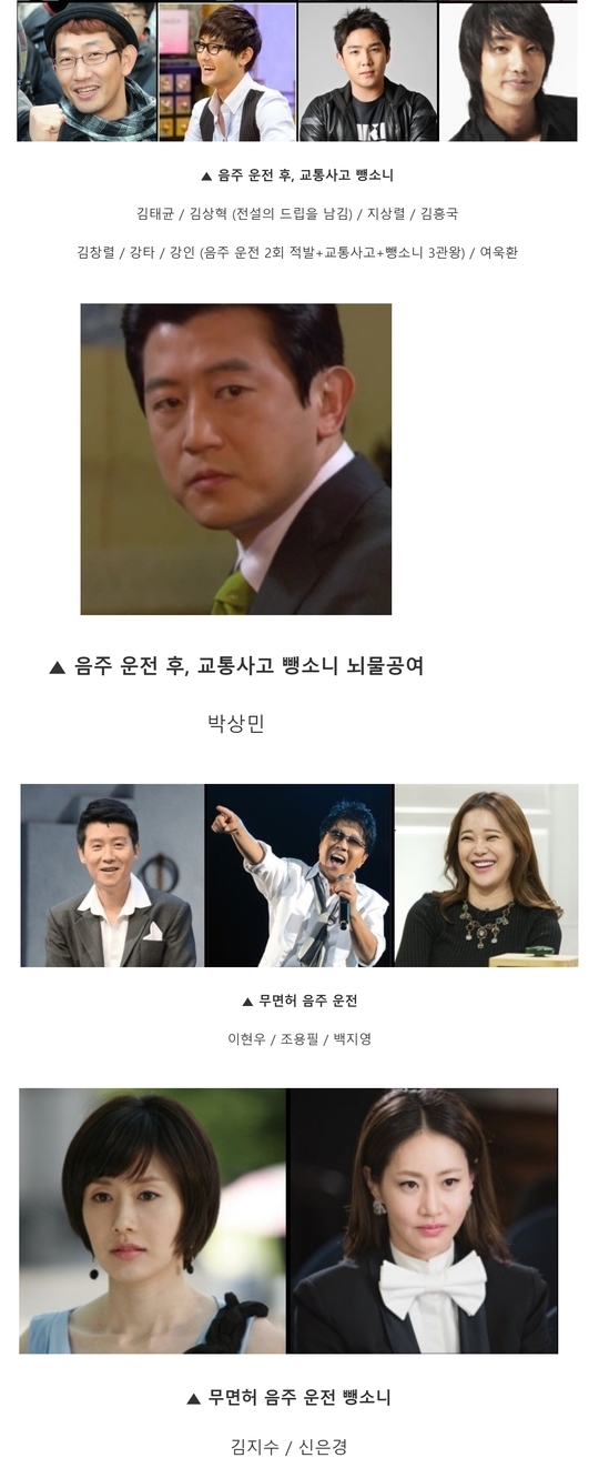 응 교통사고 중 음주운전 비율은 10퍼센트도 안되고 대통령도 음주운전 했는데 뽑아주는 나라야. 음주운전 열시미 하자~