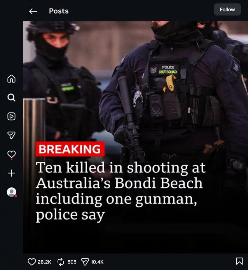 현지시간 14일 호주 시드니의 본디 해변에서 총기난사 사건이 발생