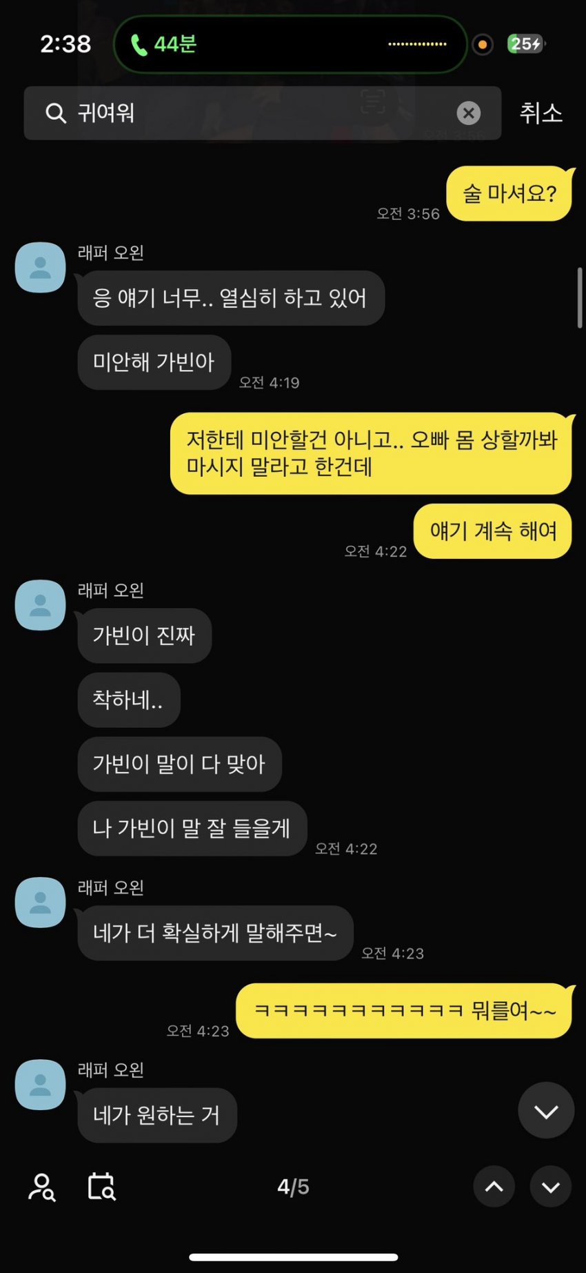 오왼은 늘 간지 원툴이지 결과물이나 성격이나 문제있는거 몰랐던 사람이 있음? 헛소리한것도 한두번이 아닌데 이것만 봐선 그냥 또 짜치는 짓 했네 정도.여기서 문제될건 저 카톡을 미성년자인거 알고나서 한거냐는건데 날짜가 없어서 모르겠네
