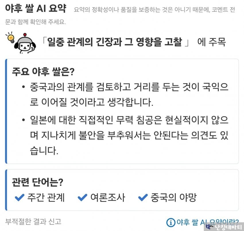 이는 다카이치를 지지하는 사람조차도 현재의 대중국 정책이 잘못되었다고 판단하고 있다는 뜻임