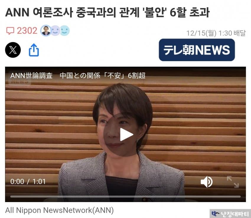다카이치가 대만 유사는 일본 유사랍시고 설쳐댄 것에 정면으로 반하는 여론이 증가하는 것