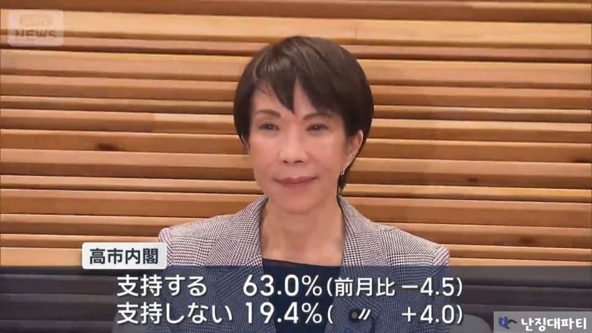 다카이치 내각의 지지율도 전월 대비 4.5포인트 하락한 것으로 나타났고, 반면 지지하지 않는다는 의견은 상승함