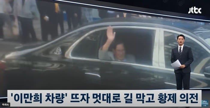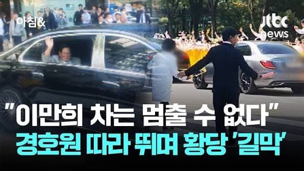 불법이라고 경찰까지 왔는데 경호원들이 막아서고 의전행렬 진행시킴