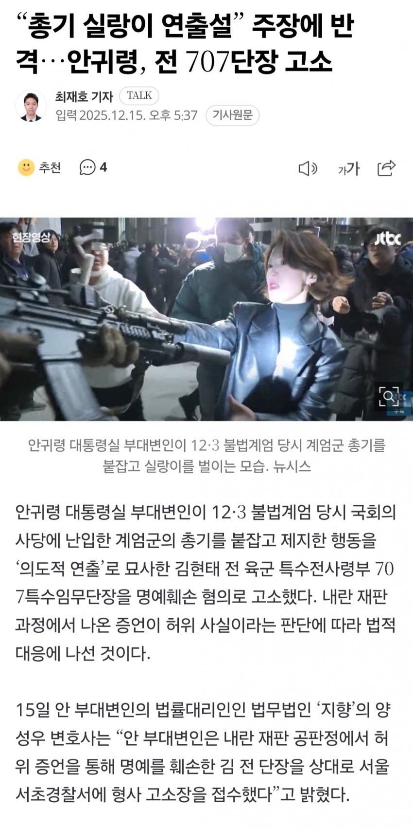 군인은 총기 뺒기면 죽는거다 목숨처럼 다뤄라 << 가장 기본적인 교육임만약 저기서 진짜 위협적인 총기탈취까지 이어졌으면 군인들은 그때부터 상황 달라져서 합법적인 현장조치 무조건 했고저기있던 시민들 유혈사태 혹은 대규모 혼란에서 이어진 압사 등도 충분히 유발될 수 있었음걍 한마디로 자기 출세하려고 저기 있던 시민들 죽일뻔한 사람인데 제발 이슈 좀 더되라