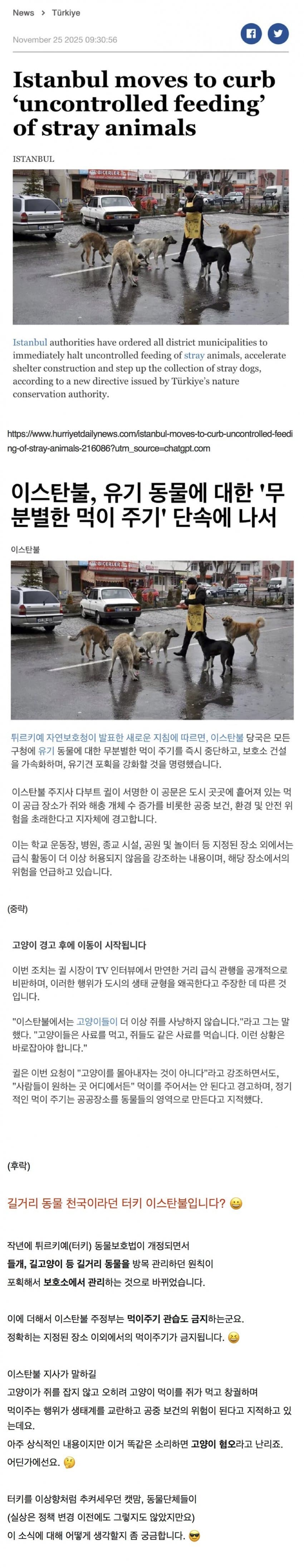 터키에 개새기랑 고양이 죤나 많던데 쟤들 잡아 들이는 것도 아니고 먹이 안주면 사람 공격할듯