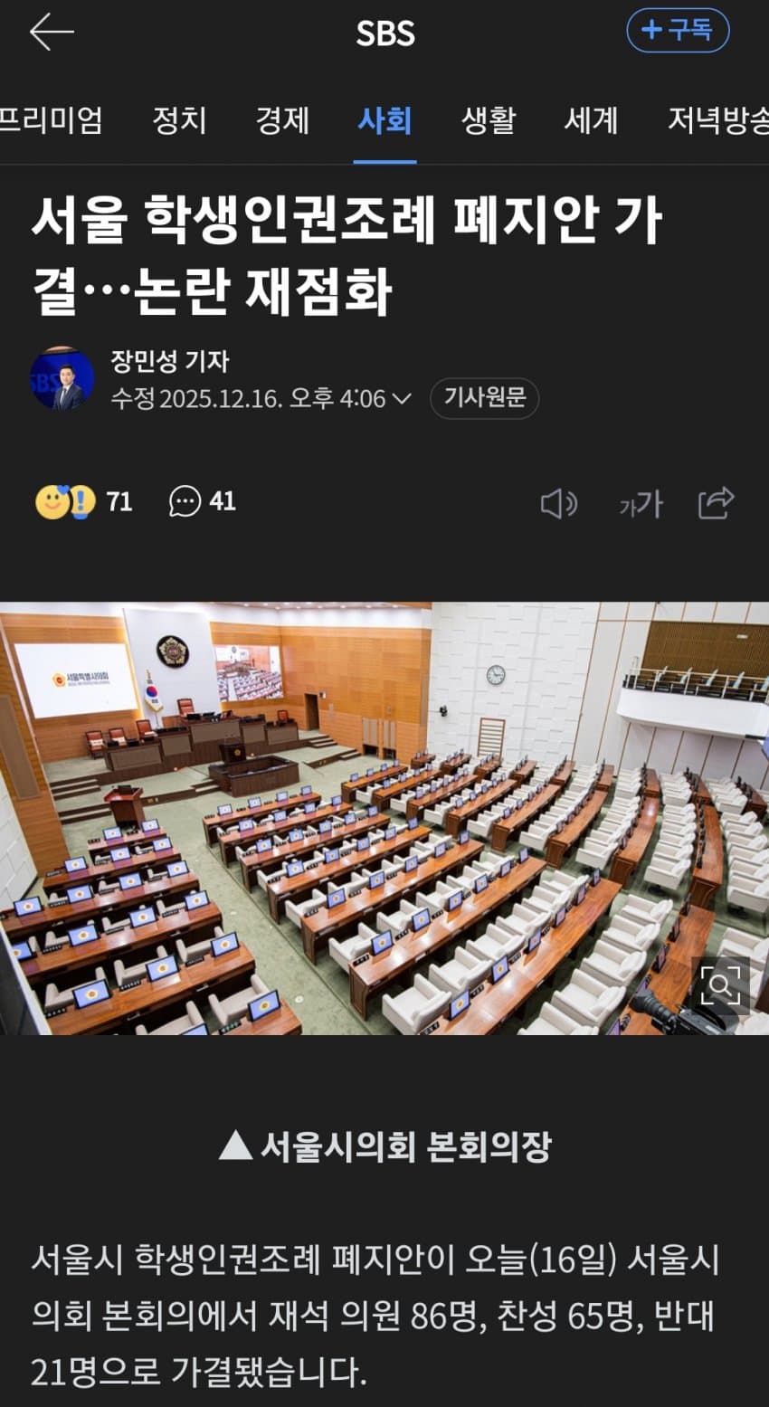 학생인권조례 필요한거 맞음.근데, 그 부작용이 십수년에 이어져왔는데, 입법자나 옹호자들이 무대응으로 일관했으니, 다시 없애는 것도 맞다고 봄.부작용 고려해서 좀 더 꼼꼼히 준비한 뒤, 교사 인권까지 포함한 학교인권조례로 나오면 좋겠음