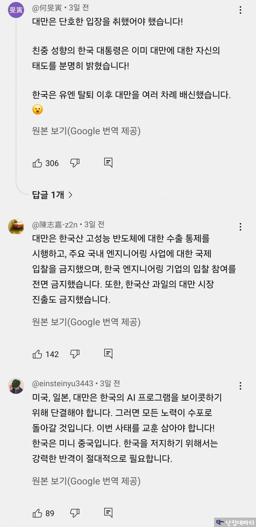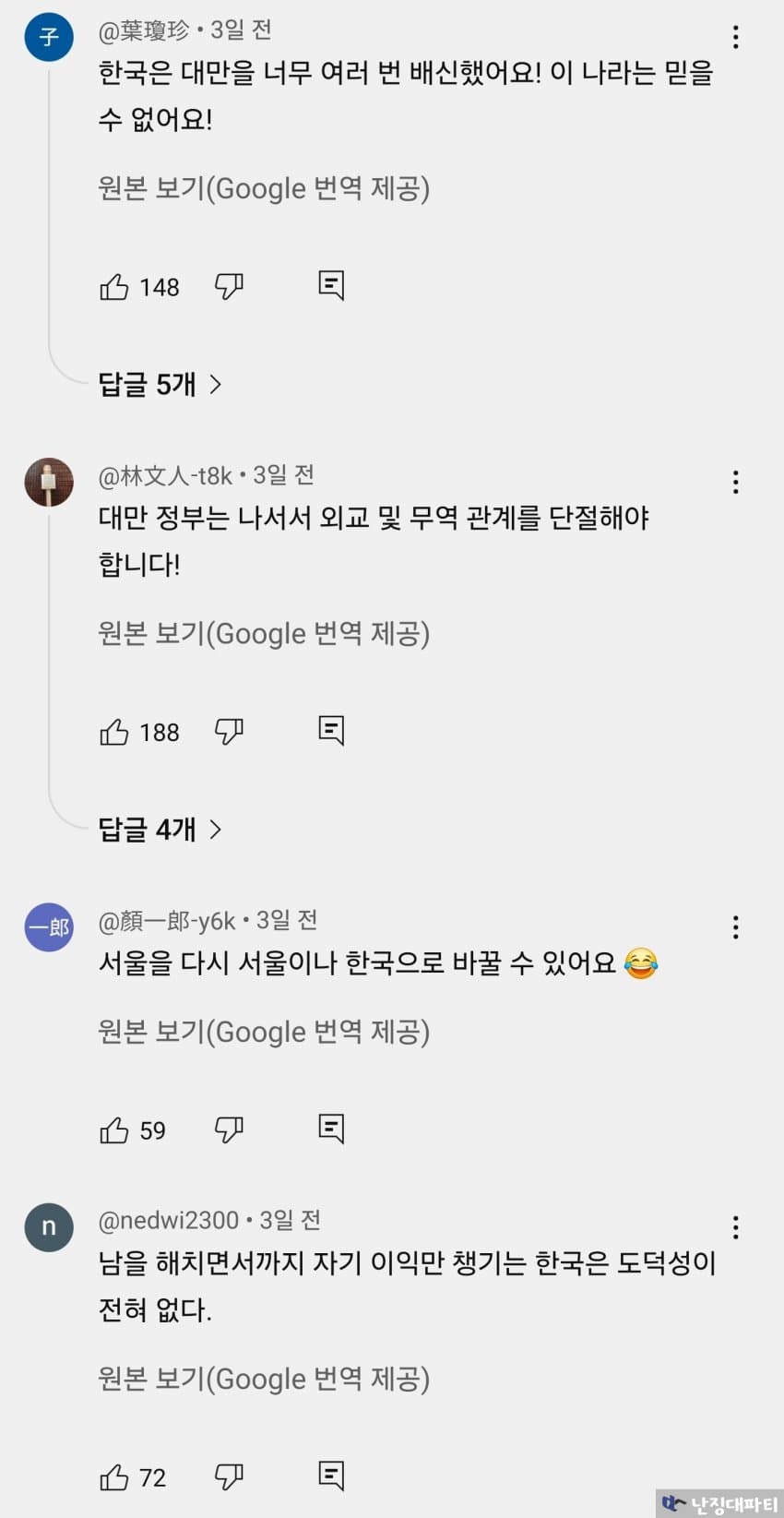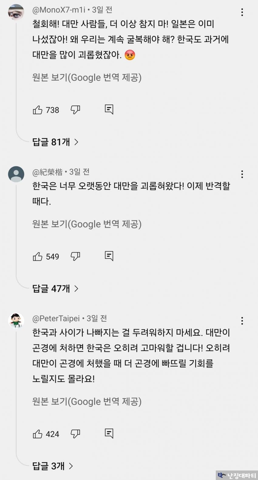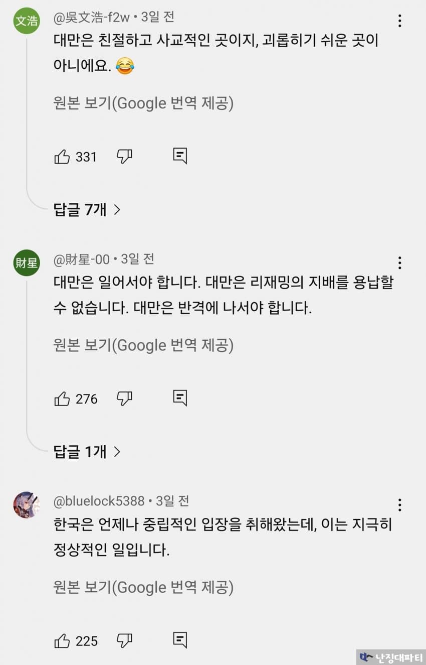 대만인의 돈으로 먹고 살아온 한국인들이 벌벌 떨고 있다는데 웃음만 나올 지경임