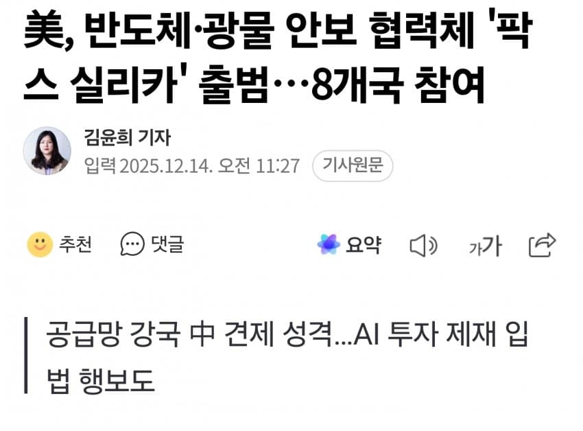 정작 미국이 주도해서 만든 팍스 실리카 8개국에 대만은 배제됨 ㅋㅋㅋㅋㅋ