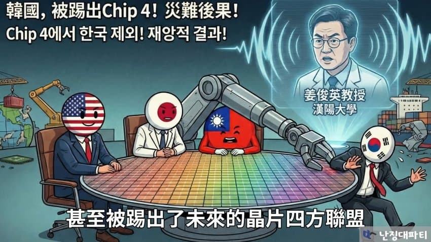 여튼 이 가상의 한양대 강준영 교수는 이번 사태로 한국이 칩4 동맹에서 배제되며 엄청난 타격을 입게 될 수 있다고 경고했다는데...