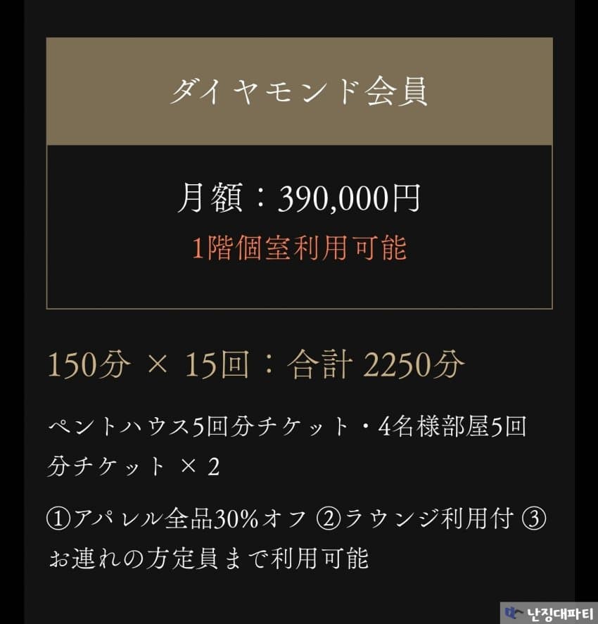 다이아몬드 회원 기준 월액 39만엔