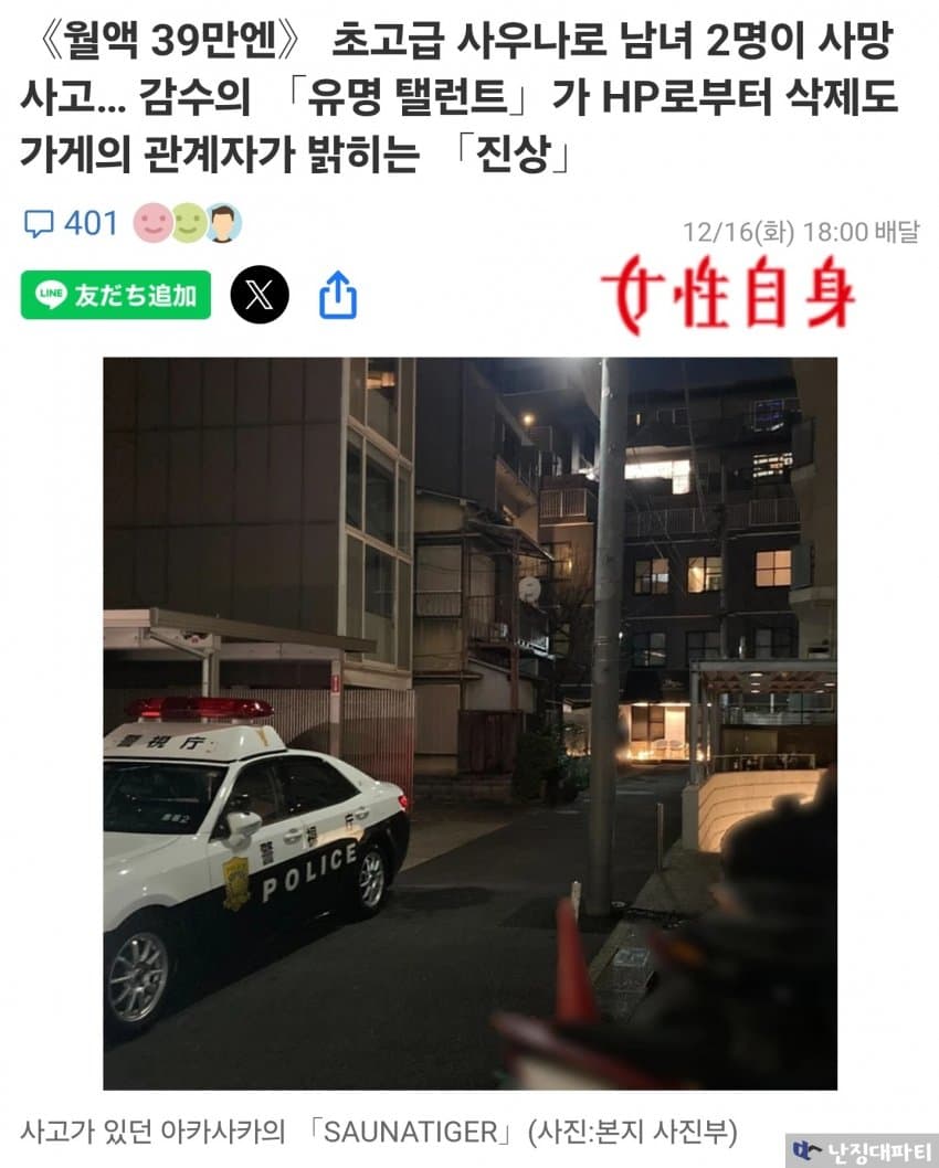 일본 도쿄도 미나토구 아카사카에 위치한 고급 사우나에서 화재가 발생해 부부가 사망함