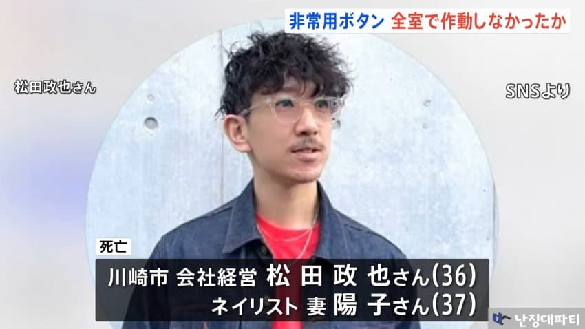 이 사고로 사망한 건 가와사키시에 거주하는 회사경영자 마츠다 마사나리(36)와 그의 부인인 요코(37)