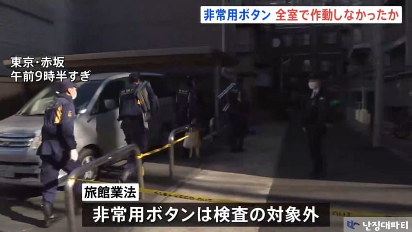 그러나 경시청의 현장검증 결과 프론트로 연결되어있다던 이 비상용 버튼의 수신함 전원이 꺼져있던 것으로 확인됨
