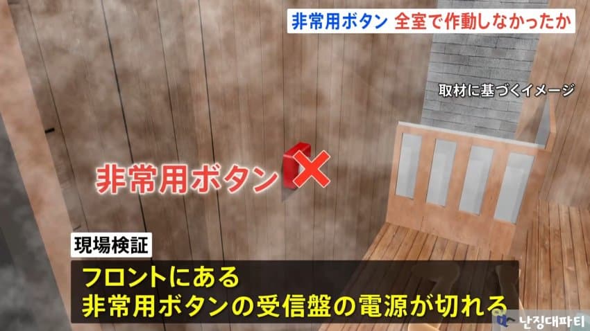 그때문에 이 객실 뿐만 아니라 전 객실의 비상용 버튼이 프론트로 연결되어 있지 않은 상태였을 가능성이 높다고 함