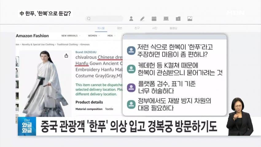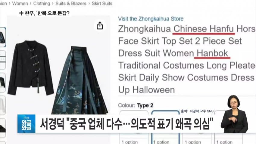Hanfu라는 표기보다도 Hanbok이 앞서는 황당한 상황