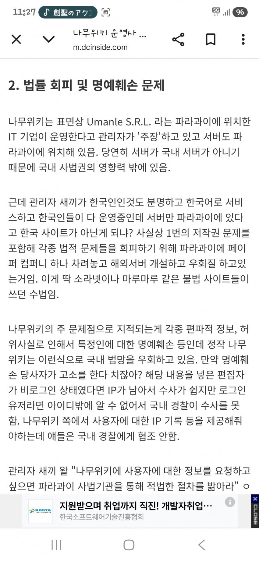 운영이야 찐따같은거 맞지만엄청 많은 회사에서 이미 하고있는짓 아님?왜 나무위키한테만 그걸 엄격하게 지랄하려고 하는거임?