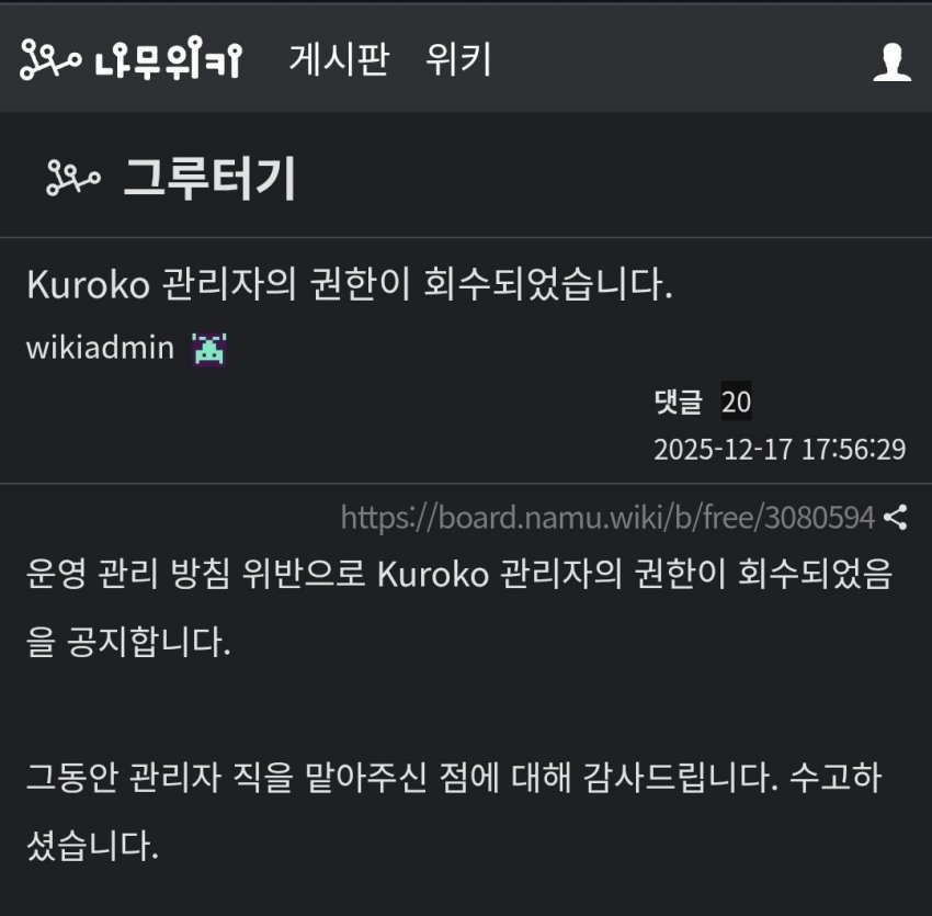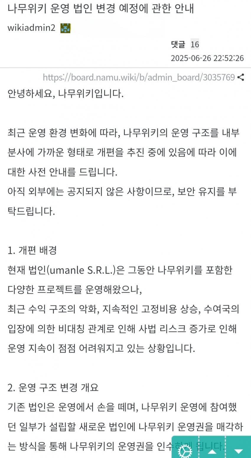 운영 개찐따 같긴 한데그래도 한국의 검열 피해서 해외 응딩이로 운영하는 위키니까 응원함요즘은 임시조치 들어줘서 아쉽지만(런베뮤 문서 날라감)