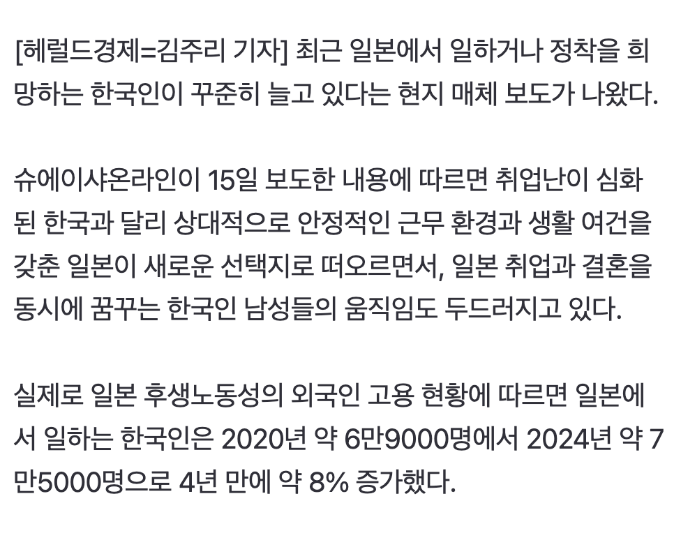 근데 정작 2030 대부분의 남자들은 일본 이민 가는거 패배자 취급 하던데ㅋㅋ 이게 현실이다 ㅋㅋ