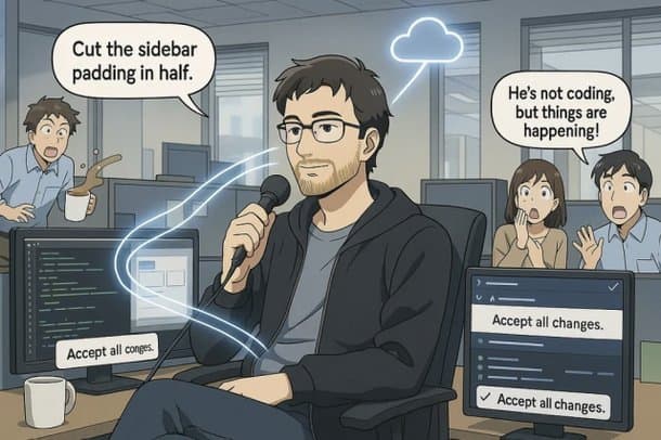 이 소식을 들은 영포티들은 너도나도 바이브 코딩 이라는 만능 무기로 4년제 대학에서 조빠지게 공부한 대학생들을 간단히 재끼고 실체도 없는 "성공한 개발자의 삶"을 찾으러 바이브 코딩의 세계에 빠져들고 있음