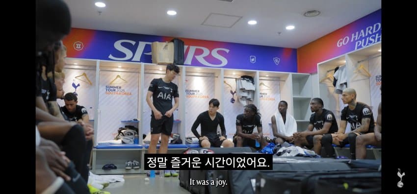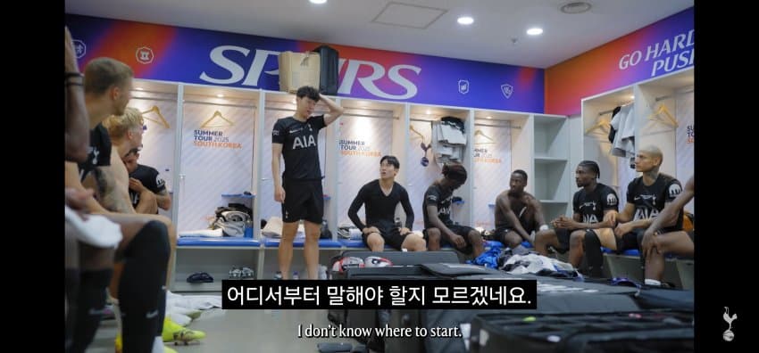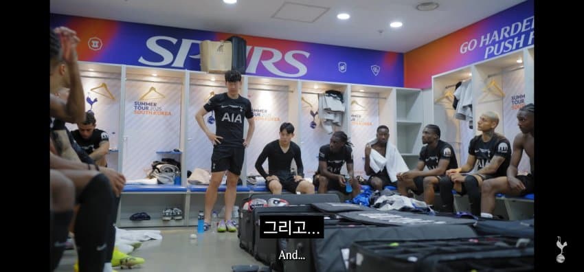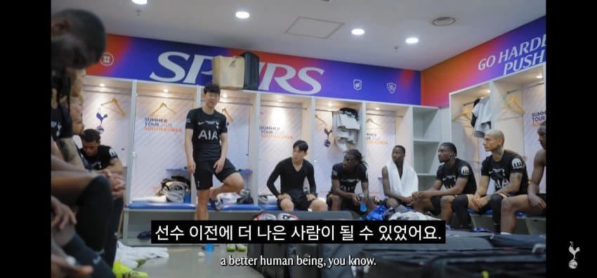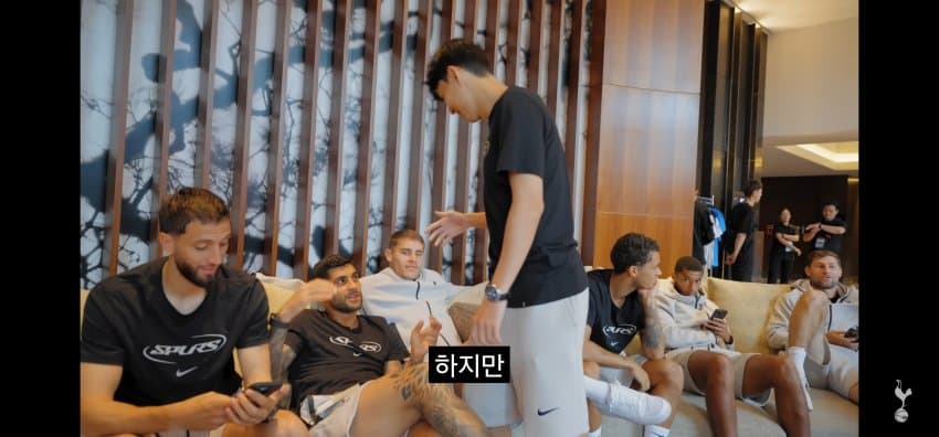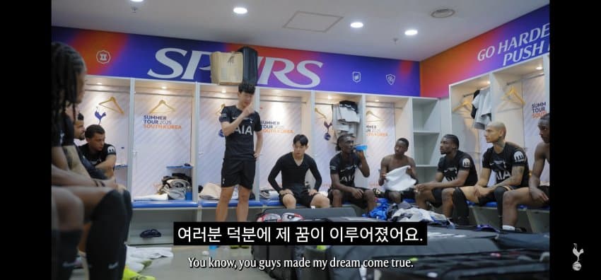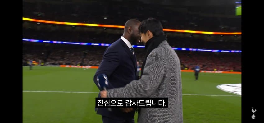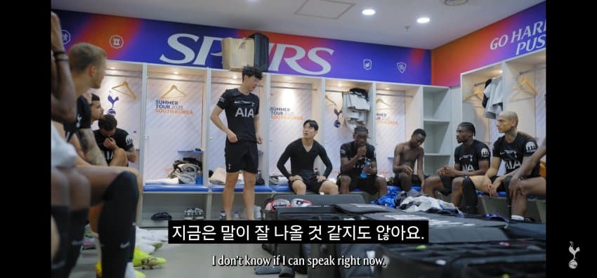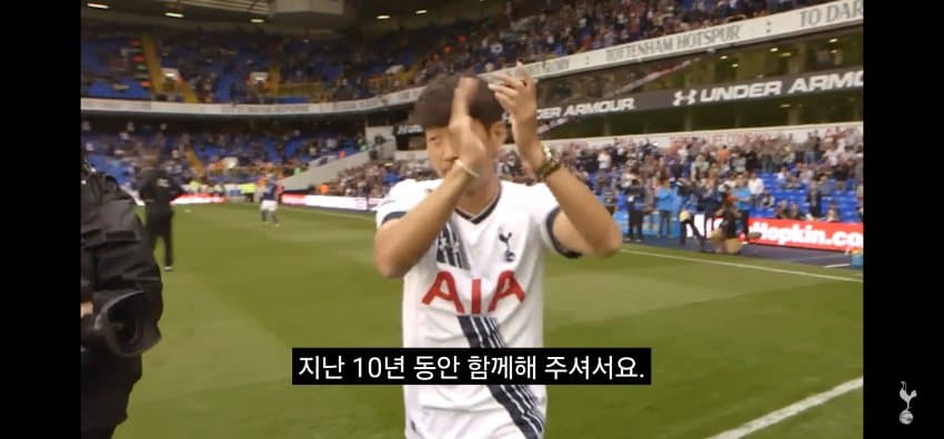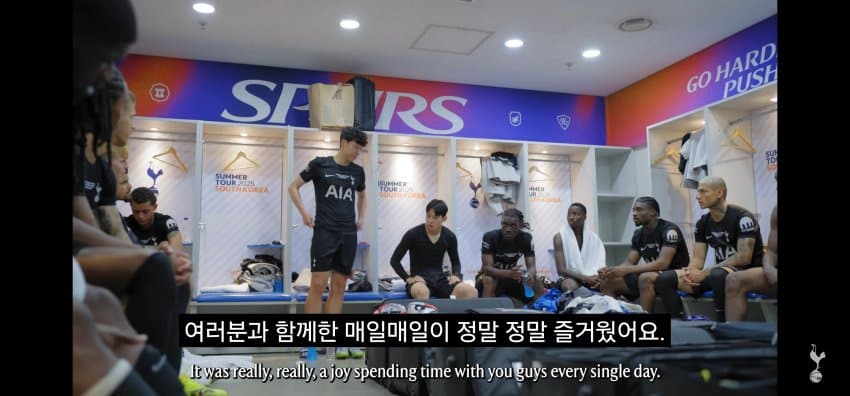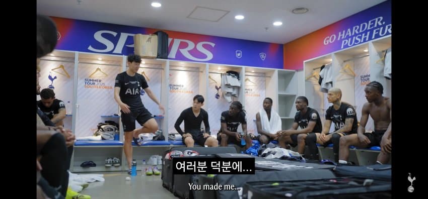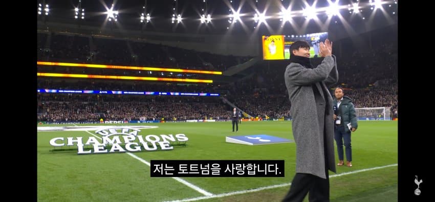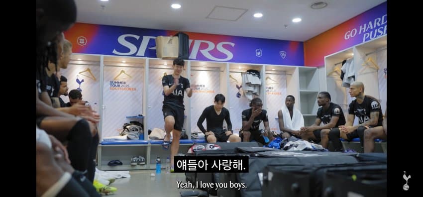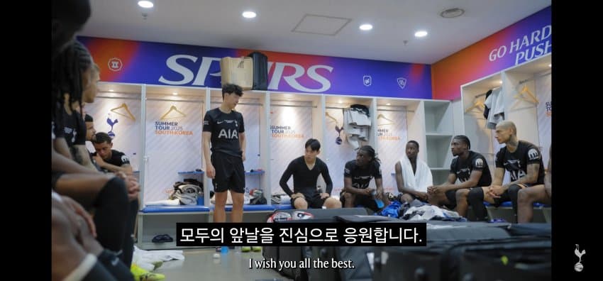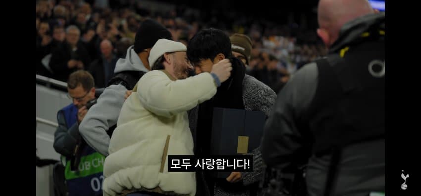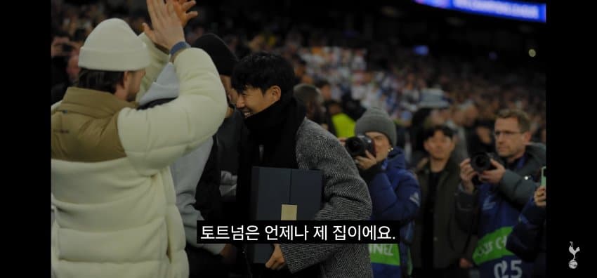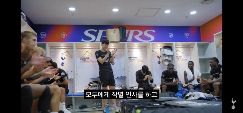 동료들에게 한국에서 마지막 경기 후 작별인사를 하는 손흥민..