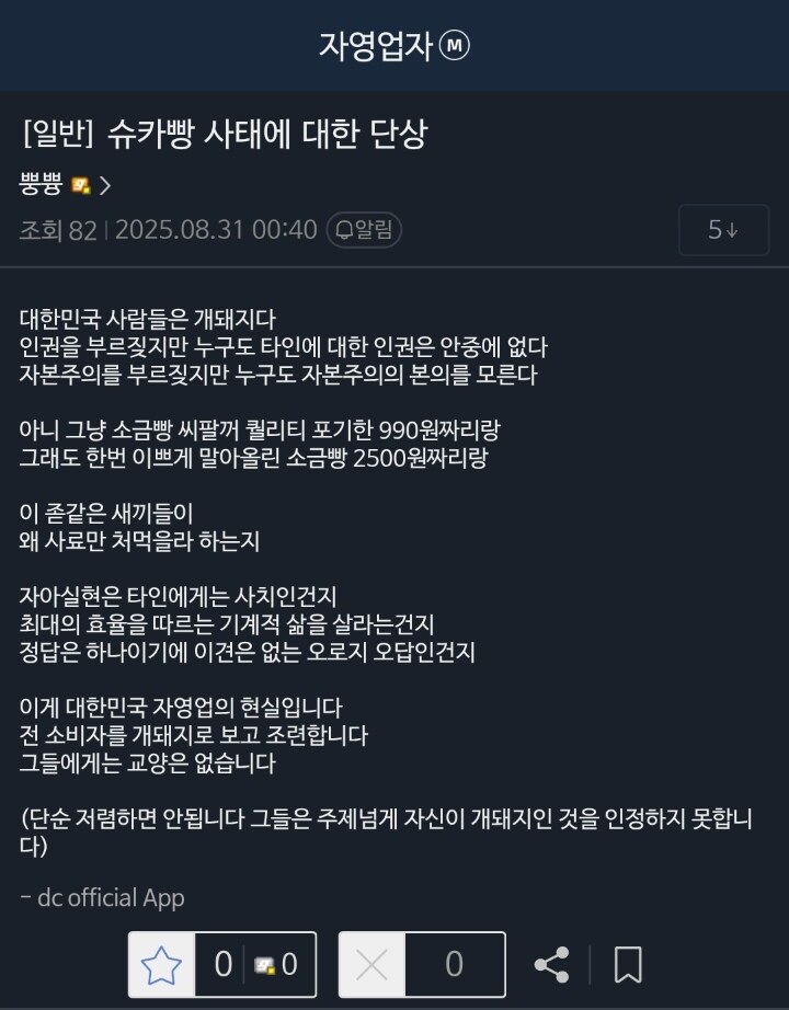 자영업자 = 남 밑에서 월급받을 능력조차 없는 무능력한 잉여들