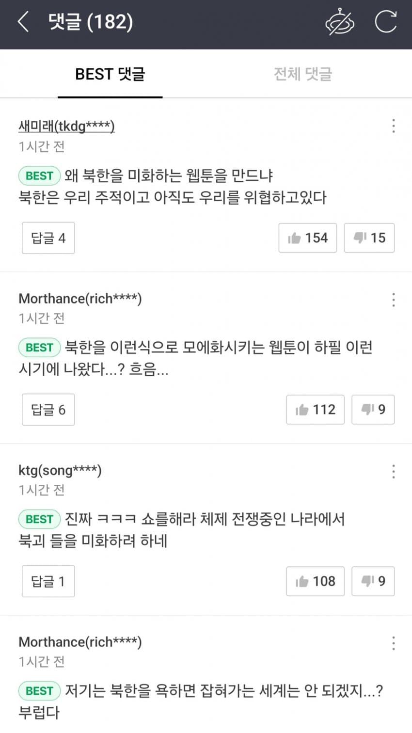 아니 저게 뭐 어쨋다고 ㅋㅋ ㅅㅂ 그냥 웹툰으로 봐라 저런거 따위로 미화 안된다