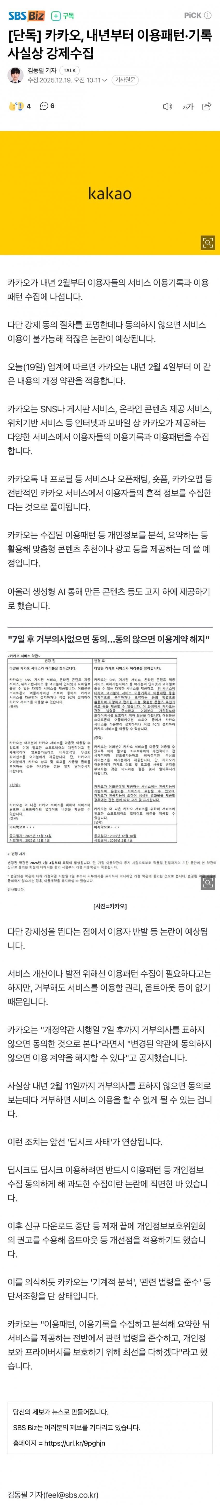 채팅뿐 아니라 모든 이용정보 수집함. 지도나 택시이용하면 사는 곳 자주가는곳까지 다 나오는거지모.든.이.용.정.보