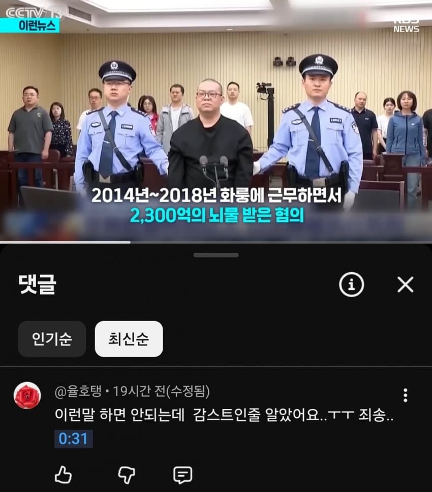 저기 나오는 전 회장 라이샤오민이 원래 더 유명함 그리고 저기 나오는 애는 똘마니였는데 그냥 같이 걸려서 뒤지는거지 정적 없애는 방식으로 되게 유명하게 뒤졋음 TV시리즈까지 만들어 가면서 죽을 빌미를 만든게 아주 ㅋㅋㅋ