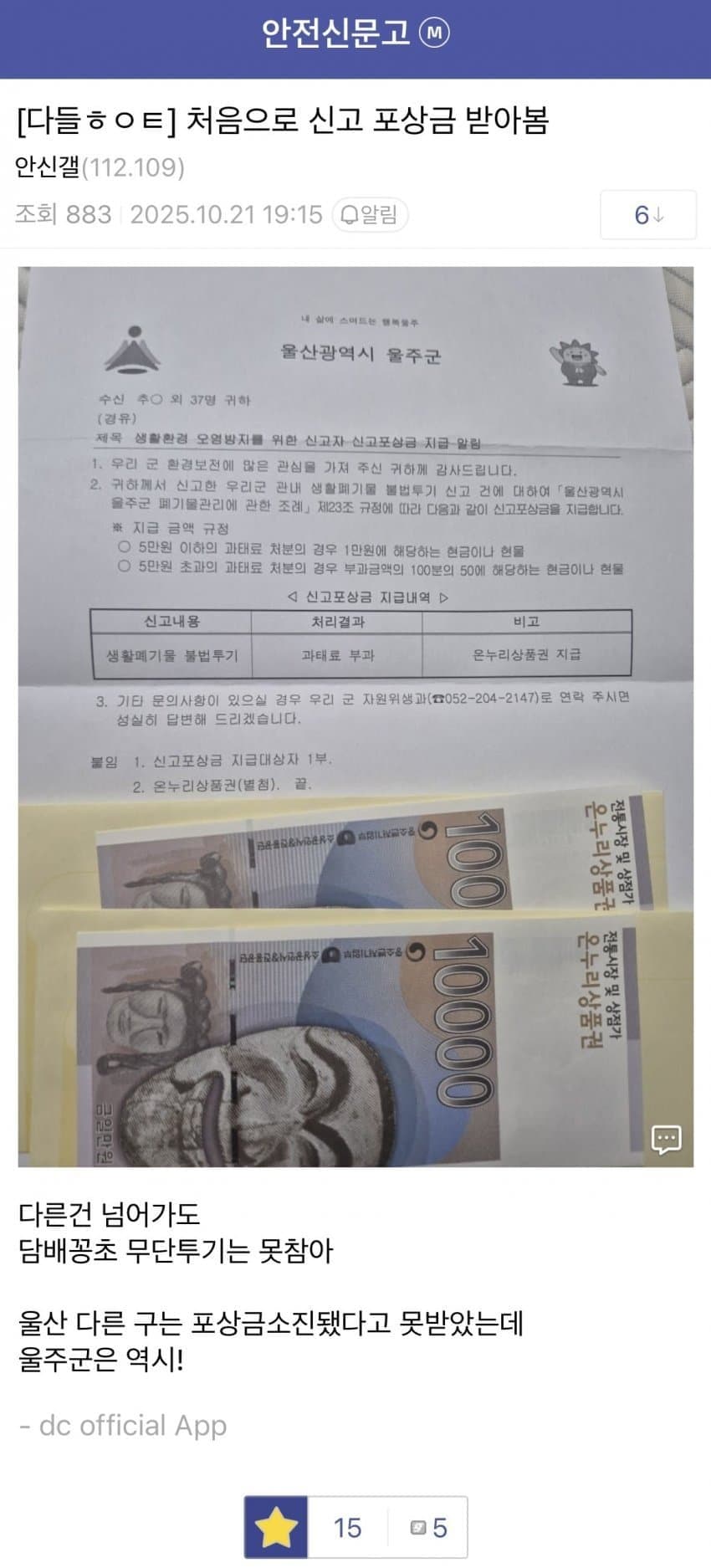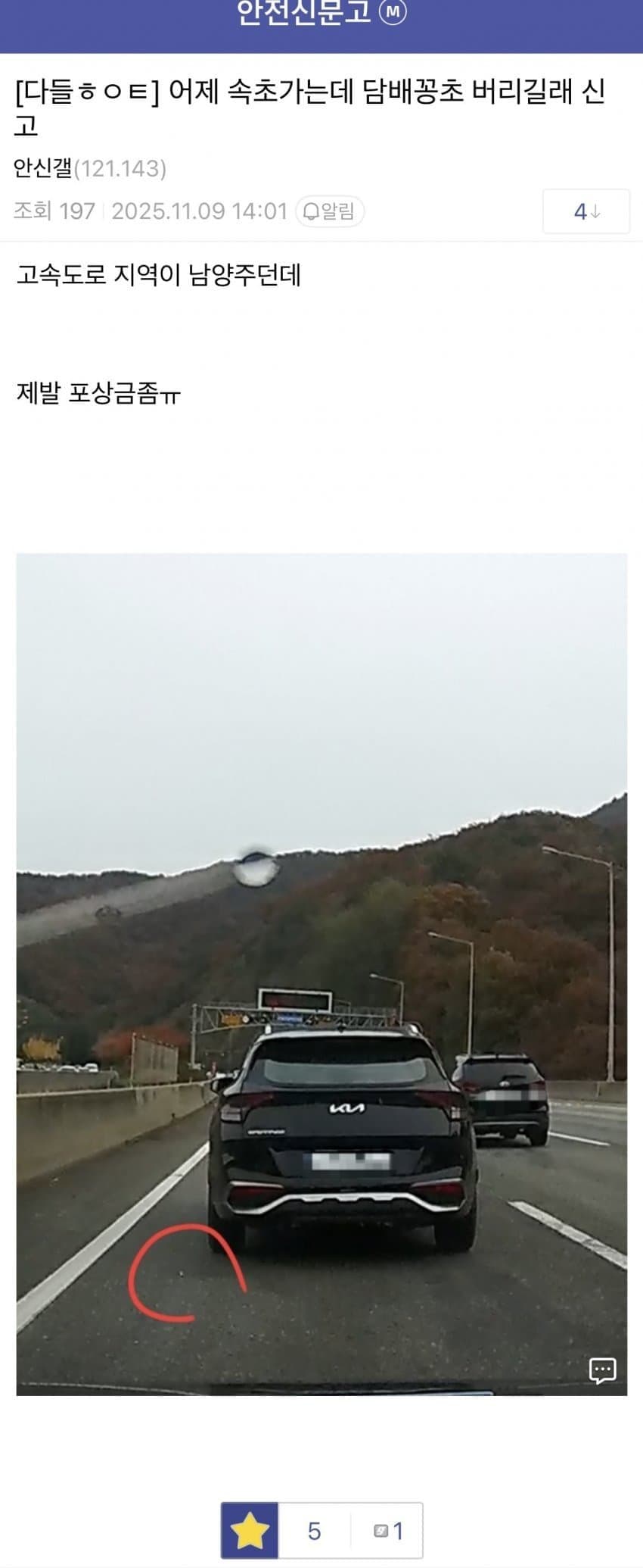 이거 ㅈㄴ 좋은데 출퇴근하다 앞차 꽁초버리면 앗싸 만원 하고 시간 대략 기록해둬야겠네 ㅋㅋㅋㅋ