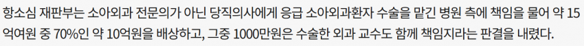 병원에만 배후진료 확보 안한 죄로 10억 배상시키고, 의사는 99% 책임 감면해서 1천만원만 물게 한 거? 이게 사법리스크 높은 사례냐?