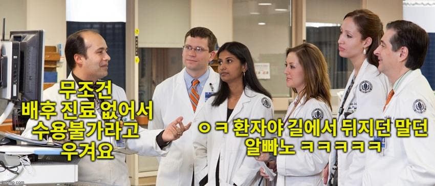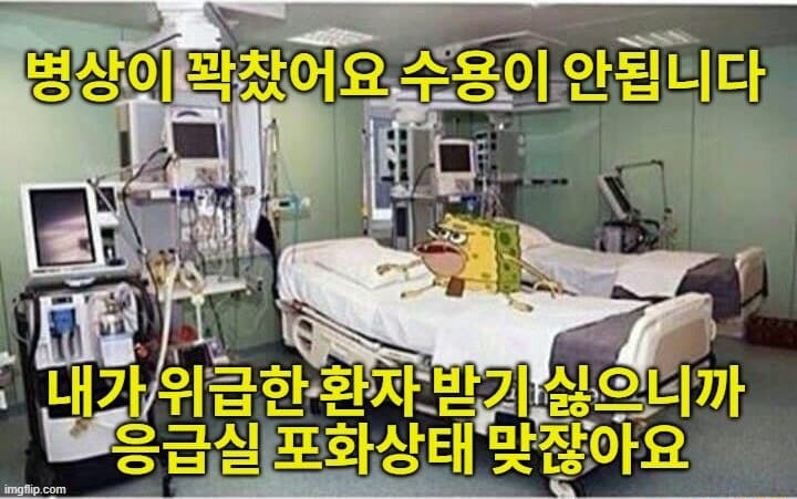 이 와중에 응급실 텅텅 비었는데도 "진료 불가능합니다" 라면서 환자를 거부하면 그냥 길에서 객사하게 만드는 거지.