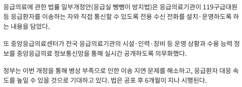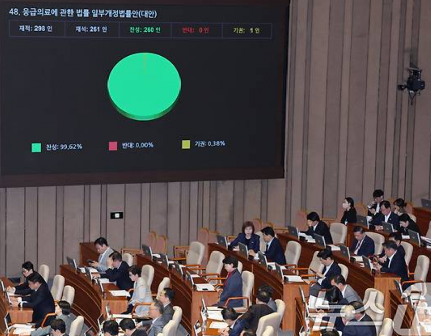 응급실 뺑뺑이 방지법이 반대 0표로 만장일치로 가결되었지만,