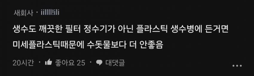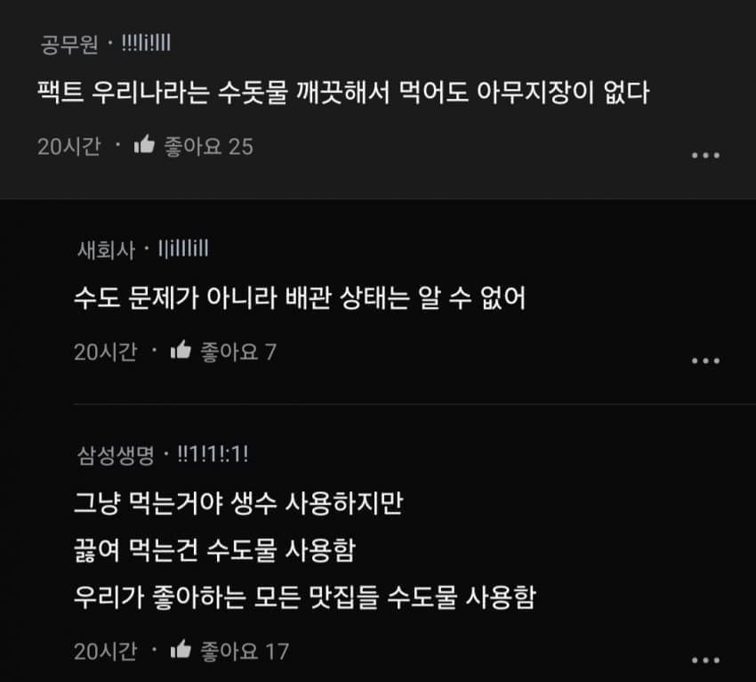생수도 지하수 배관 녹쓴거 다 두들겨맞은거 생수 회사에서 정수필터 거쳐서 포장하는건데 뭐 수돗물이랑 다른줄 아노;;