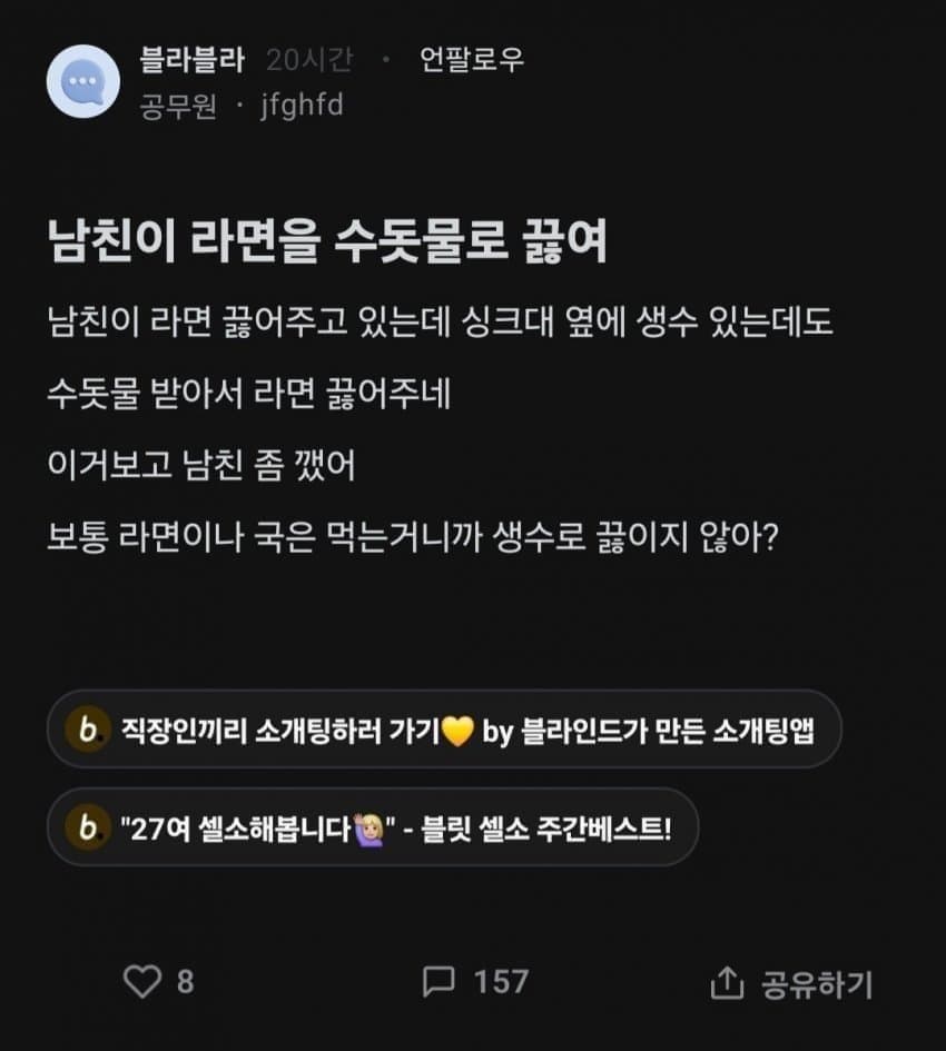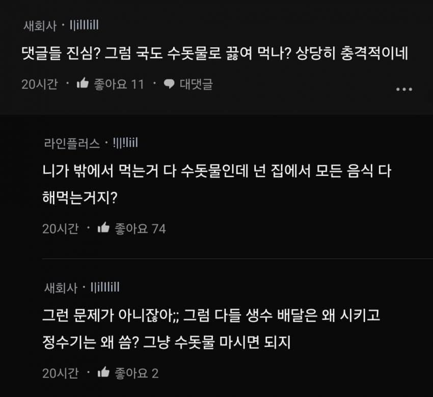 앰생들이 디씨에 많으니 저걸 쉴드치네 라면을 정수기물로 끓이지 어떤 정신병자가 수돗물씀