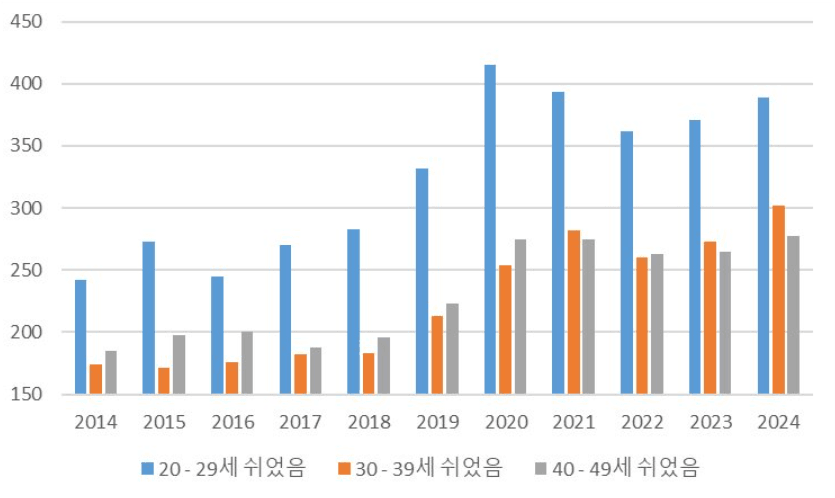 쉬었음 인구가 폭증하게 된 건 2020년 코로나 이후임 쉬었음은 그 전에도 뉴스에서 간간히 언급되었지만 20년을 기점으로 서서히 언급이 늘어나더니 23년~25년에 많이 언급되고 있음