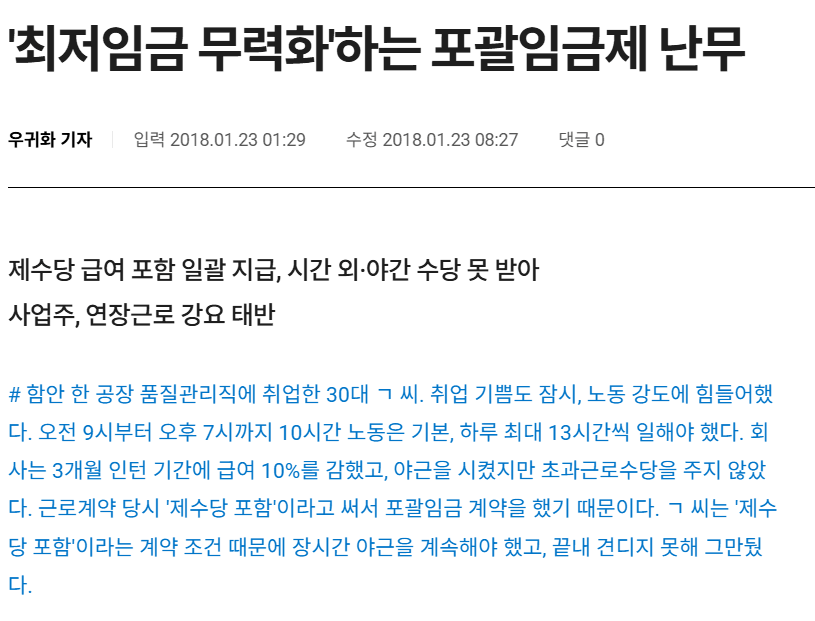 포괄임금제로 최저임금 인상을 회피할 수 있었음