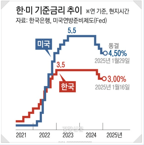 몇 년 간 한미 금리차가 벌어진 채로 버텼었음