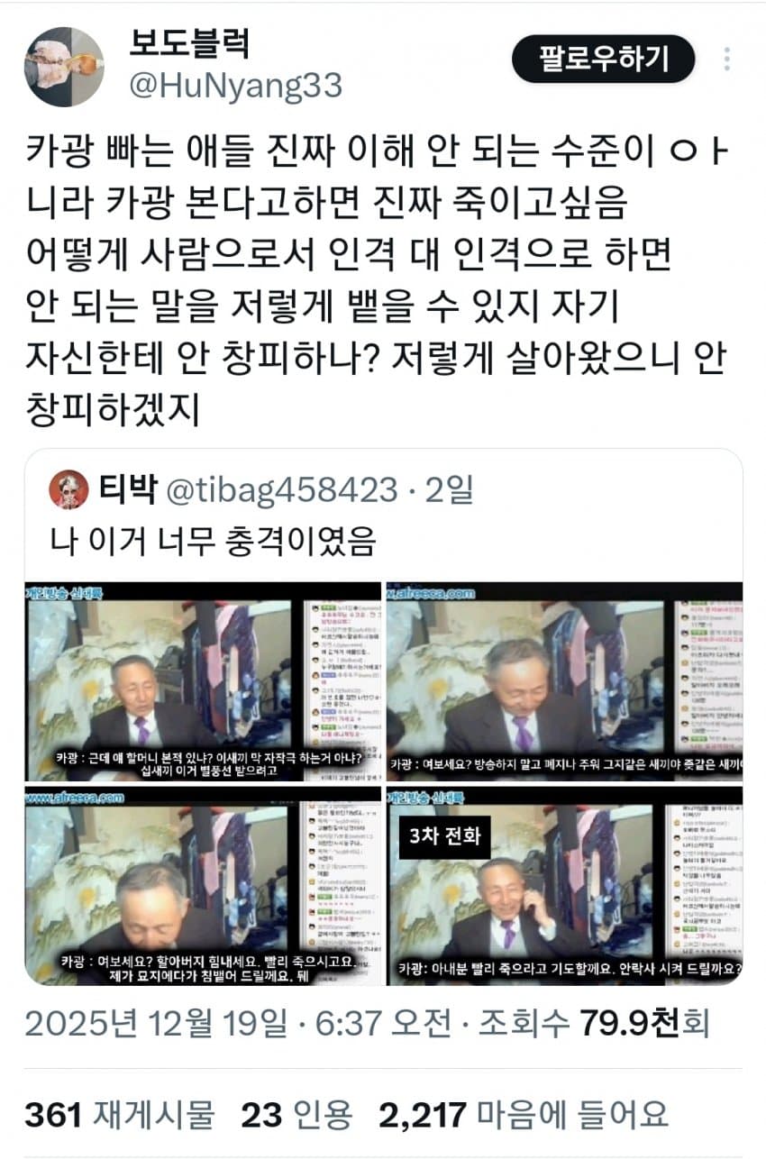 쟤는 하는 행동을보면 공통적으로 나타나는게 사람을 실험하듯이 테스트하는듯한 느낌이 남본문도 보면 증오에 받쳐서 욕박는게 아니라 이할배는 욕을 어디까지 참나?, 애꿎은 할배에게 욕하면 다른사람들은 어떤반응일까? 이런거 시험하는 느낌이 듬