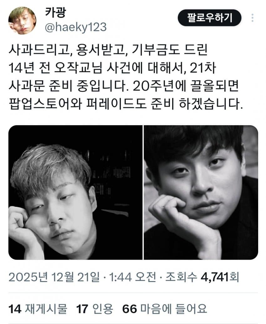 강간하고 착한 척 연기하는 사람도 있는데 급식충 때 븅신짓한거 가지고 저 정도로.