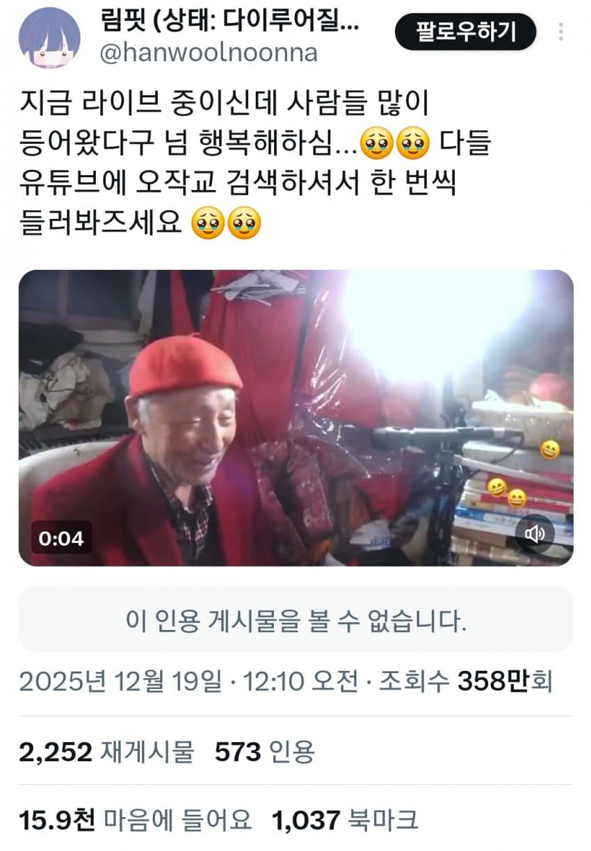 오작교 할아버지가 아직 방송한다는게 더 충격이네 ㅋㅋㅋㅋㅋㅋ