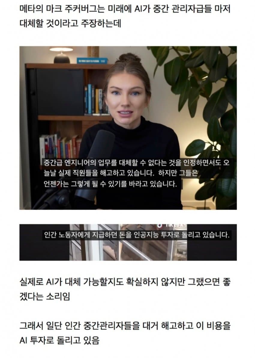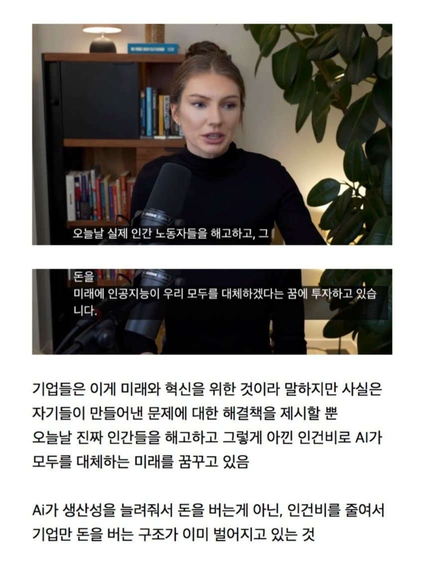 AI가 발전하면 기본소득으로 살아간다 말한 AI창업주들 싹 다 본인회사 직원들 50%이상 감축 ㅋㅋㅋ 기술 배워라 AI ceo들 하나같이 한 말은 다음 재벌은 기술직에서 나올거란 말 뿐임 책상앞에서 공부로 승부볼거면 판검사의사뿐이다 어중이 떠중이들 책 붙잡지말고 기술배워라