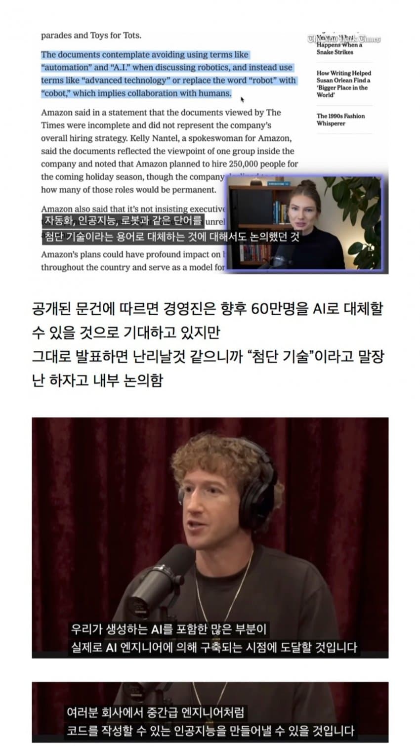 AI로 가장 먼저 정리되는 부류는 사무 정밀 관련 전문직이라고 수 십년 부터 나온 얘기인데, 이제 점점 실현 단계에 왔구나. 이제 인간에게 남은 직업은 위험하고 힘든 현장직들이다. 왜냐하면 사실상 프로그램 짜기에 변수가 너무 많고, 물리적인 강화를 할려면 돈이 많이 들기 때문. 흔히 말하는 휴머노이드는 우주 개발용이지, 노다가에 도움을 주는 용은 아니다. 그렇게 대중화 될 만큼 양산이 불가능하고 가격이 너무 비싸다. 결국 잡일은 인간이 해야 되며, 그런 자들이 자신들이 하는 일에 정당한 요구를 해야 된다