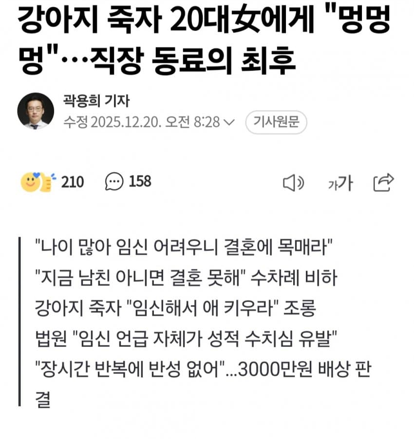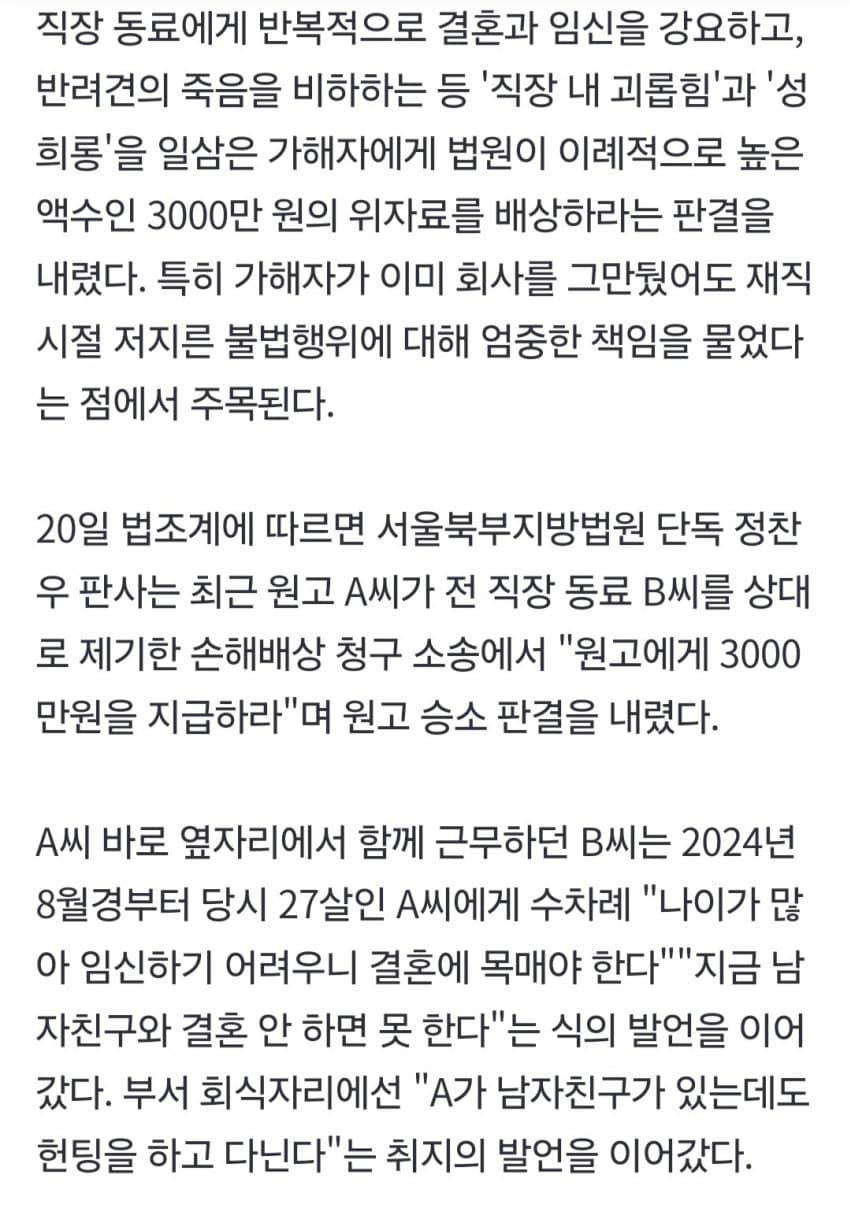 1. 20대 여직원에게 임신은 지금해라 지랄