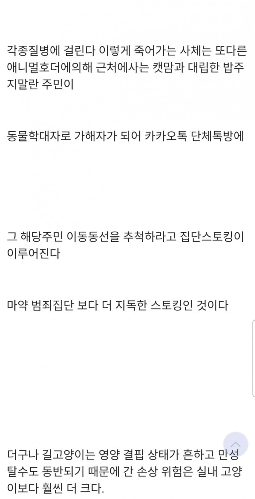 야생고양이에게 사료를 주는 것은 길거리에 마약을 뿌리는 것과 같습니다. 특수범죄 가중처벌 해야합니다