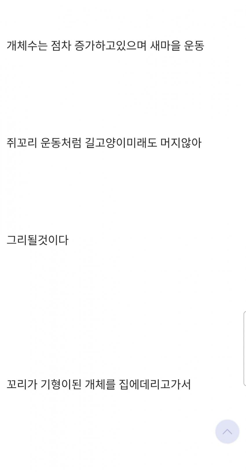 이게 딱 이대남들 수준을 잘 보여주는 글이네 그 누구보다 냉철하고 객관적인척 하지만 유사과학 숭배하고 돈 시간들여서 자기 좋아하는 일 한다는 사람들 비웃으면서 본인들은 아무것도 안 함 길고양이 꼬라지 뵈기 싫으면 공기총이라도 사다가 다 쏴죽이던가 한다는게 밥그릇 엎으면서 사람들한테 시비터는거 ㅋㅋ 대단하다
